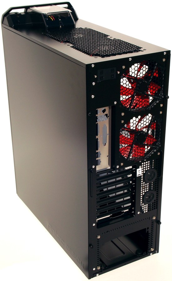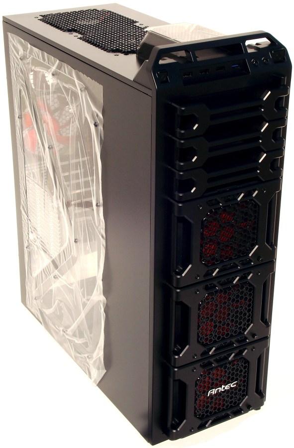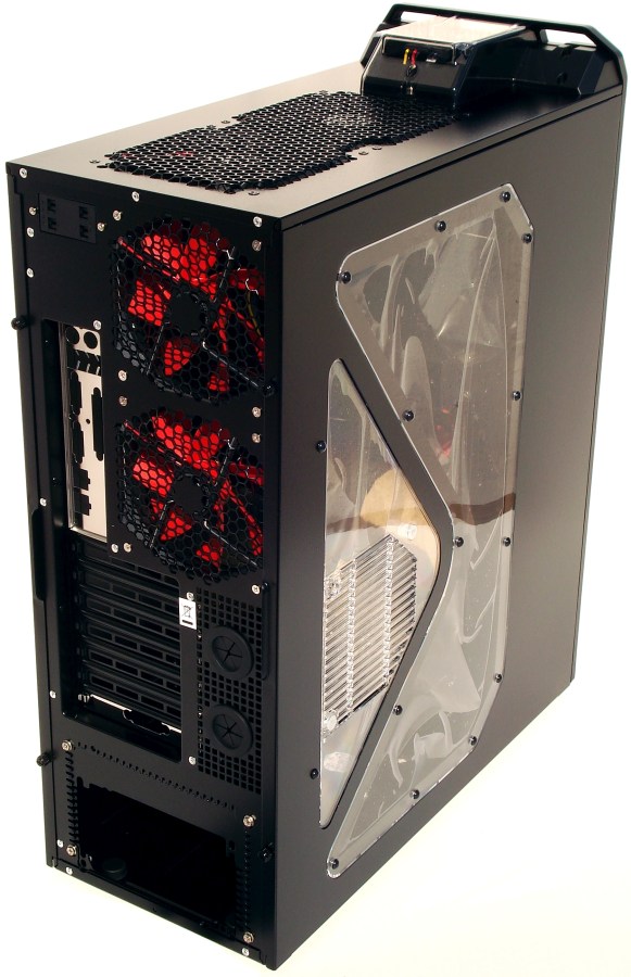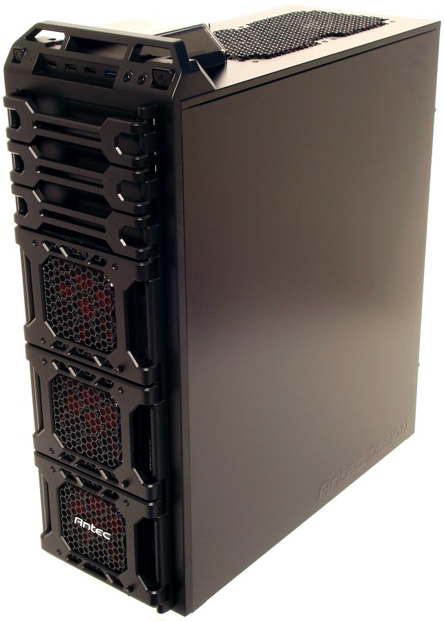 El componente principal, como no, es la torre DF-85. Esta torre de grandes dimensiones y peso es impresionante. No solo por su excelente acabado, ensamble y tratamiento de los materiales, sino por su extraordinario diseño. Aunque esto suene a demasiado atrevimiento, quizá sea la torre mejor diseñada en la actualidad, aunque aquí entra mucho el gusto de cada uno. Podemos empezar a discutir si sus ventiladores no tienen la mejor relación rendimiento/sonoridad (pero son regulables), o que tan solo trae 3 bahías de 5.25″ externas, o que se puede mejorar la parte inferior de la torre, pero lo cierto es que es una de las torres más equipadas en la actualidad y con mayor funcionalidad, que en definitiva e inconscientemente es lo que mayoría de usuarios buscamos.