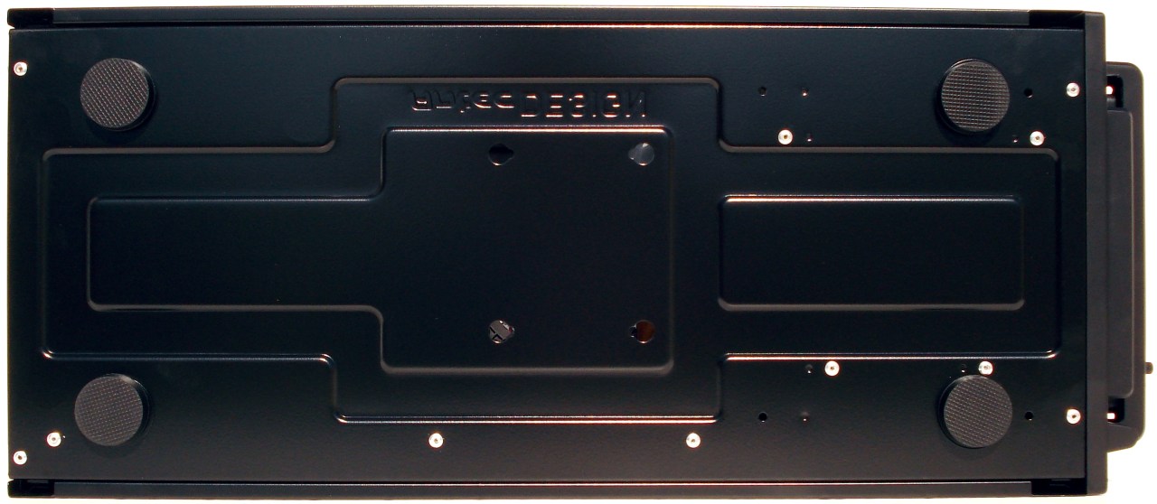 La única cara que ANTEC descuida un poco (dentro de unos límites, claro está) es la cara inferior, al igual que ocurre con la DF-35. Ésta es totalmente cerrada, en la que solo hay 3 cosas a destacar. La fuente de alimentación no puede ser refrigerada cogiendo aire de la parte inferior de la torre, por estar totalmente cerrada. No posee ningún ventilador inferior de entrada. A cambio, se ha habilitado un espacio para la colocación de una unidad SSD a través de un kit de montaje adjunto. Por último, cabe señalar sus 4 patas de excelente calidad y de un material idóneo para este menester.