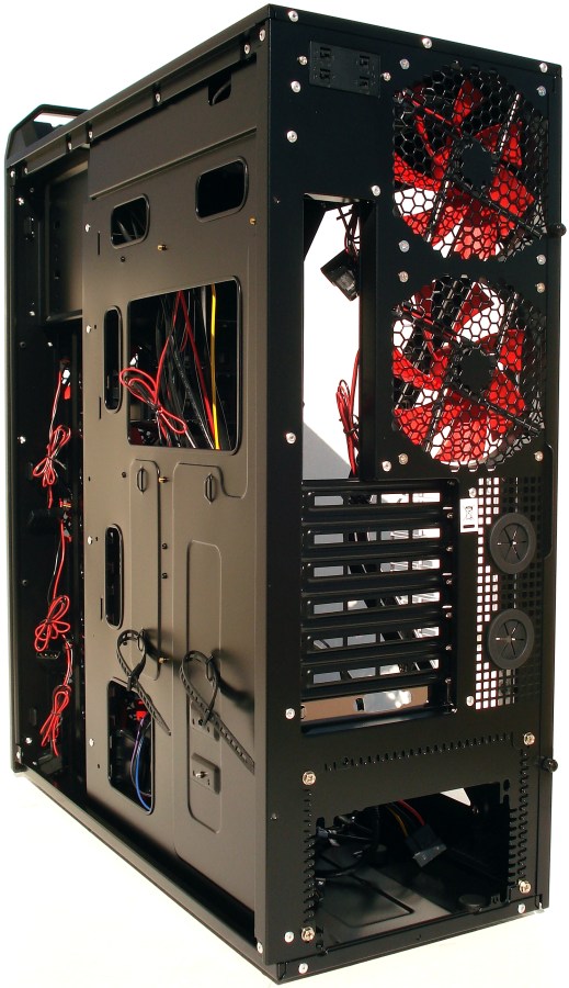 De modo que en definitiva tendremos 3 ventiladores de entrada (+1 lateral opcional, aunque aconsejamos colocarlo de salida) y otros 4 de salida en la parte trasera y en el lomo.