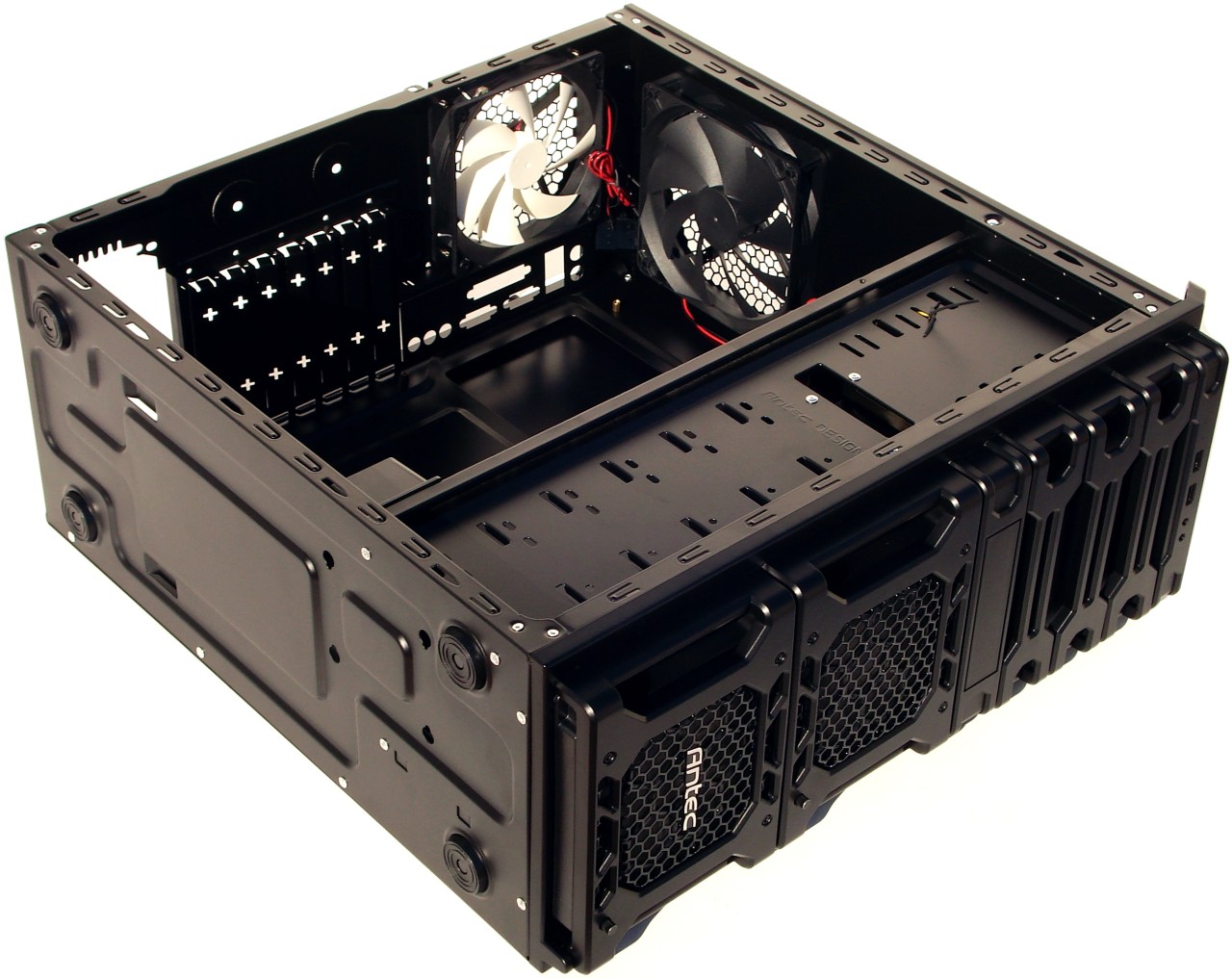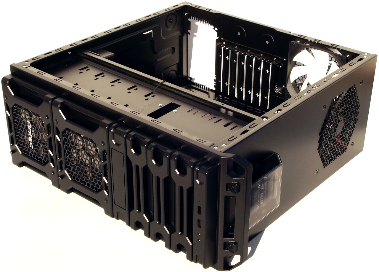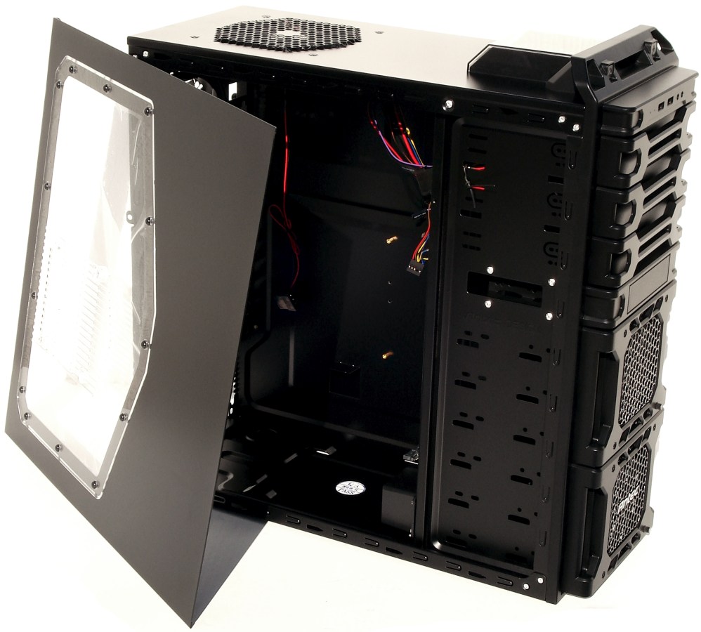 Una vez montada esta unidad hemos comprobado el rendimiento general de los ventiladores, sin montar ningún otro ventilador adicional. Con tan solo 4 ventiladores preinstalados (3 de 12 y 1 de 14cm, 2 de entrada y 2 de salida) y a pleno rendimiento se consigue un caudal a envidiar, gracias a las elevadas revoluciones de los ventiladores y a su capacidad de mover caudal. 3 son los puntos más calientes de una torre (en orden): tarjeta gráfica, procesador central y discos duros (la fuente de alimentación se trata a parte), por lo que esta caja está enteramente preparada de fábrica. La única pega es la elevada sonoridad que pueden generar los ventiladores, superior a los 24dBA, pero como son regulables, no hay inconveniente. Por lo demás, cabría una mejora en el lateral izquierda, para la entrada limpia de aire sin polvo.