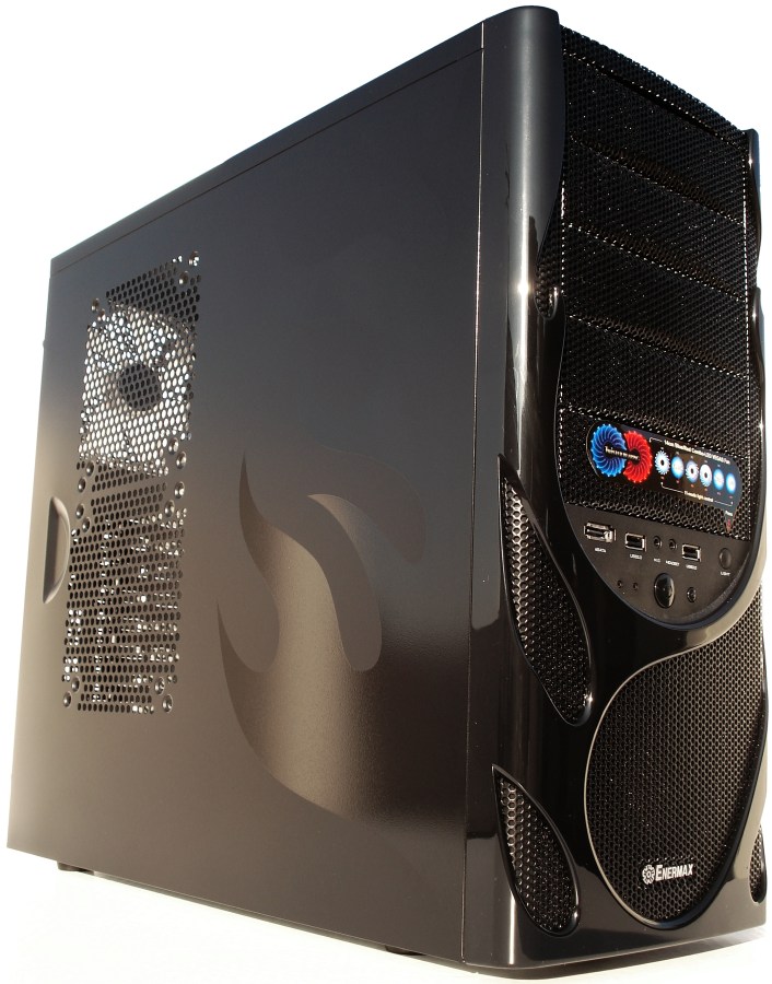 - Ventilador adjunto frontal de lujo. La VOLCANUS posee el galardonado ventilador APOLLISH VEGAS de ENERMAX, con LEDs bicolor azul y rojo, con 11 funciones de iluminación, para los amantes del modding.