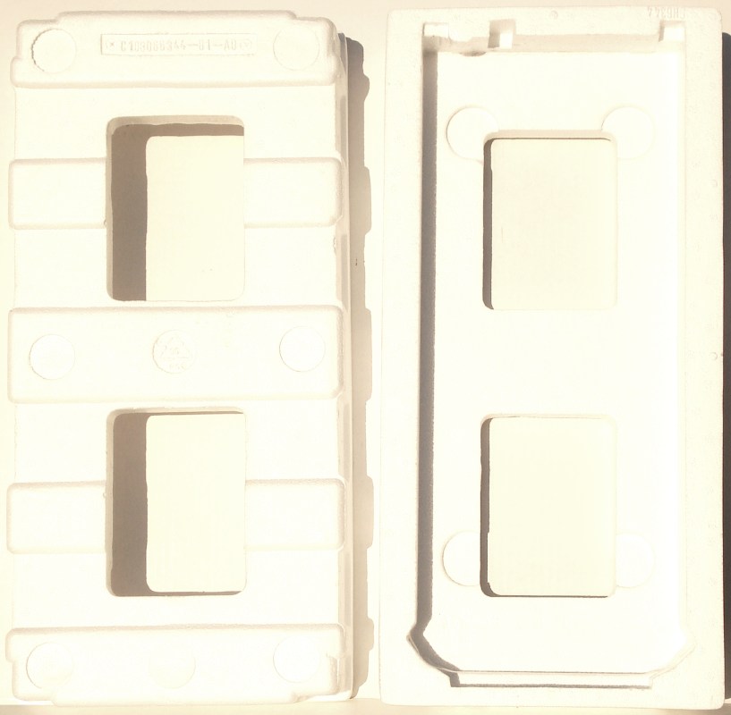 Estas protecciones están situadas en la parte superior e inferior de la Semitorre, evitando que ésta reciba golpes directos del exterior en su transporte. En concreto, este poliestireno es de calidad, suficientemente flexible para evitar que se rompa con facilidad. A parte, tenemos la bolsa de plástico, vista anteriormente, que evita el cúmulo de humedad y polvo.