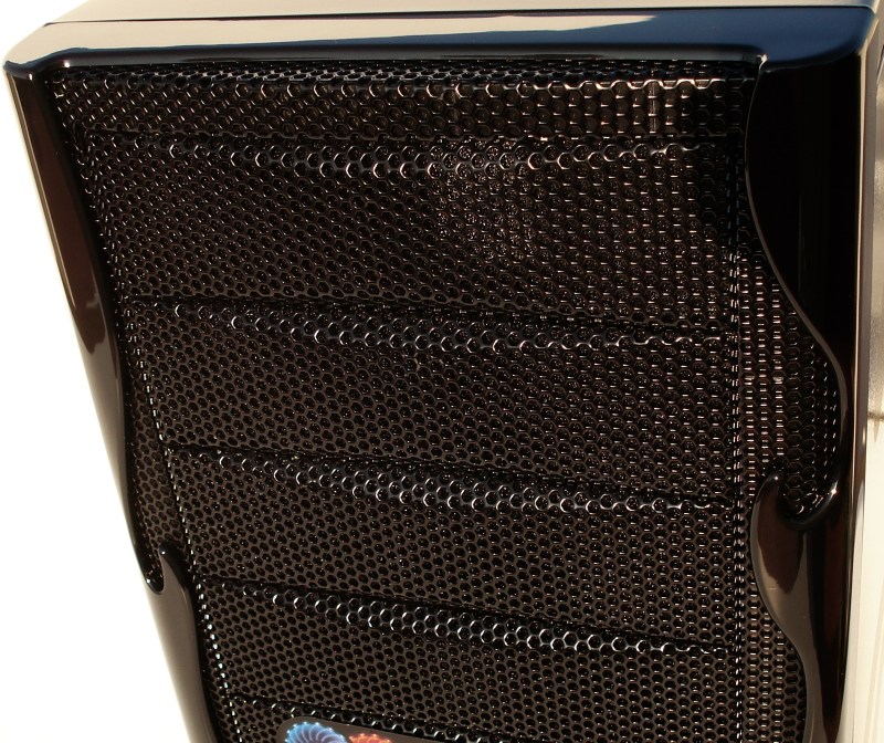 De entrada su diseño sigue honrando a su nombre, con un motivo agresivo, imitando a una llama de fuego que bordea y se apodera del frontal. Sin duda es un diseño peculiar que se alega a lo que generalmente estamos acostumbrados. La mayoría de la superficie viene con rejilla perforada de tipo «nido de abeja», dando un aspecto de radiador, resaltando su panel frontal de control y conectividad.
