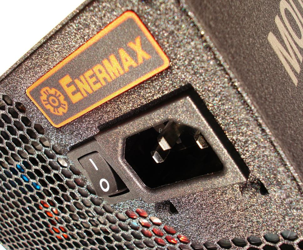 ENERMAX MODU87+ 800W. Detalle Conector de Alimentación + Interruptor de Encendido/Apagado
