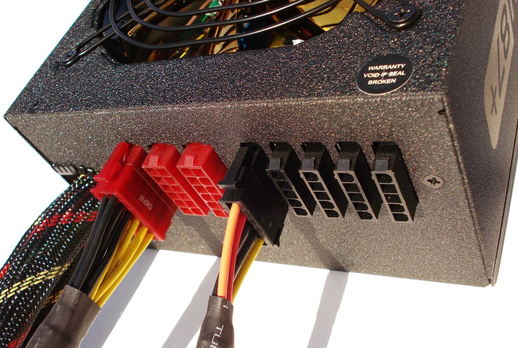 Esta fotografía nos sirve para ver la conectividad entre los molex de los cables modulares con el panel trasero de la fuente de alimentación. Veámosla con mayor detalle…