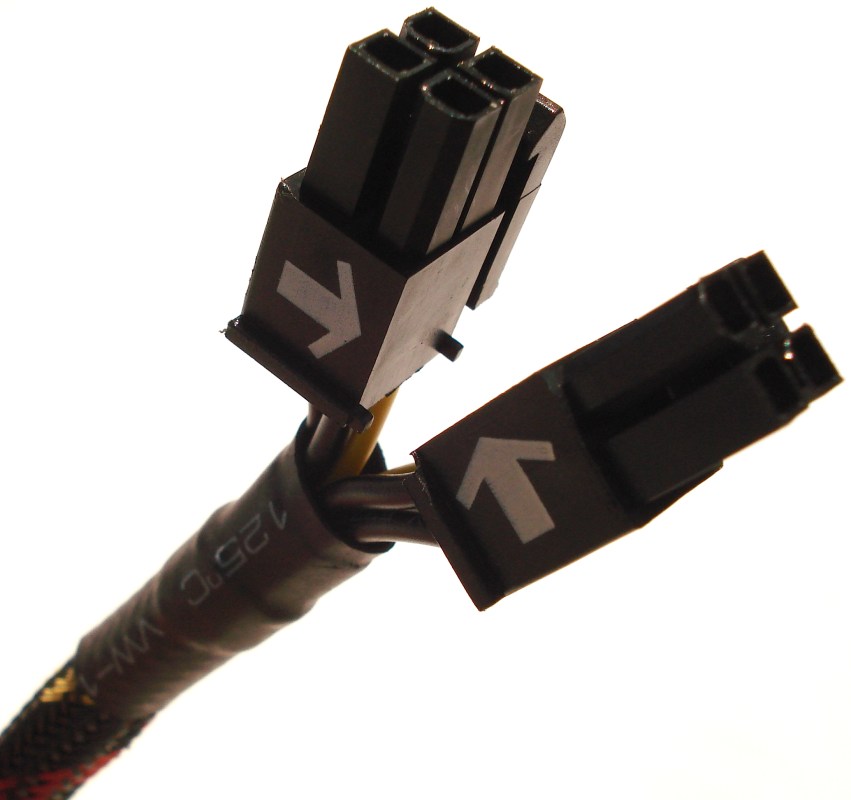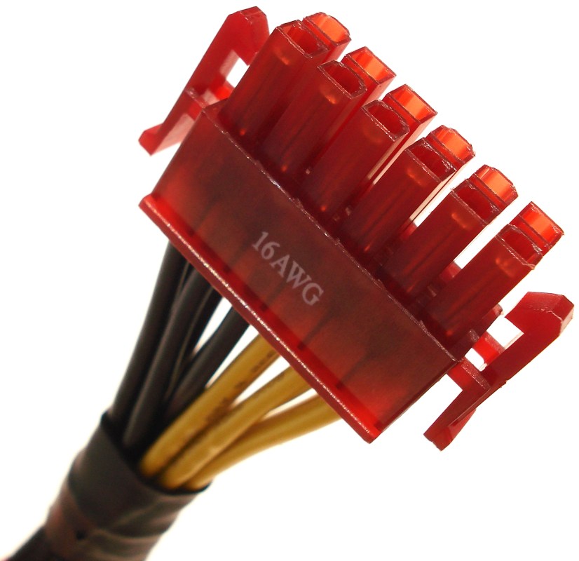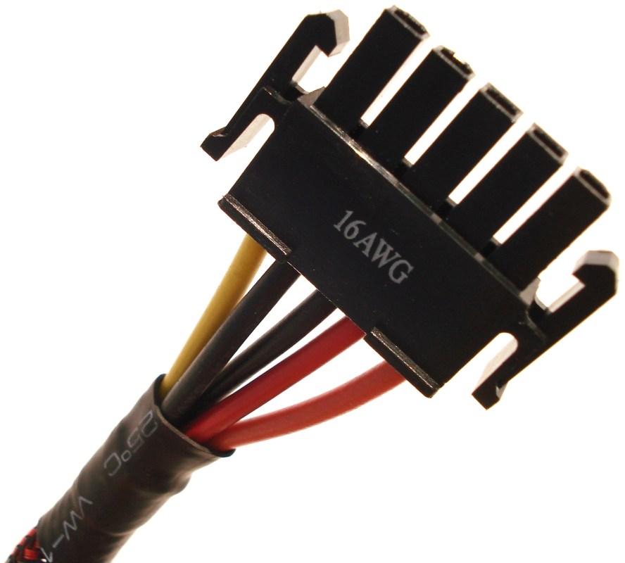 Se emplea el color rojo para identificar fácilmente los molex correspondientes PCIe y el negro para el resto. Los molex de 4 pines están diseñados para fácilmente poder ser desconectados, presionando en ellos con los 2 dedos de la mano.