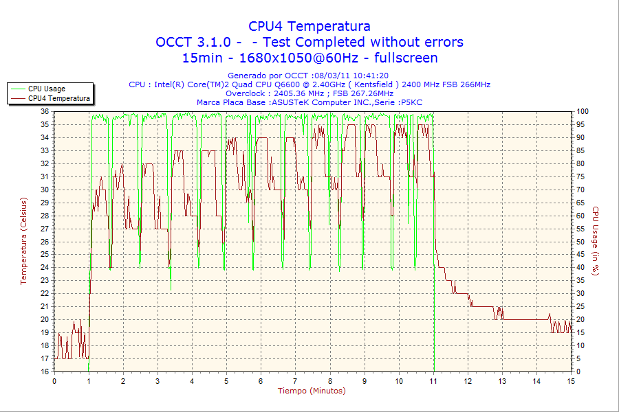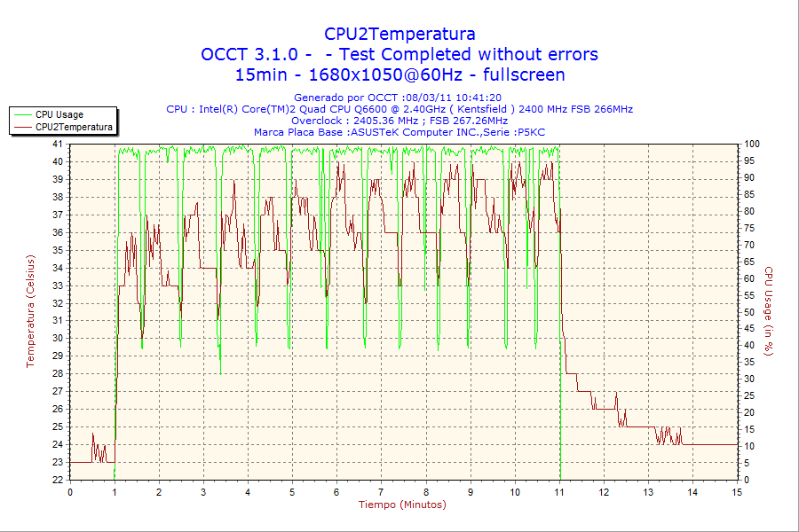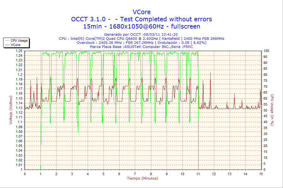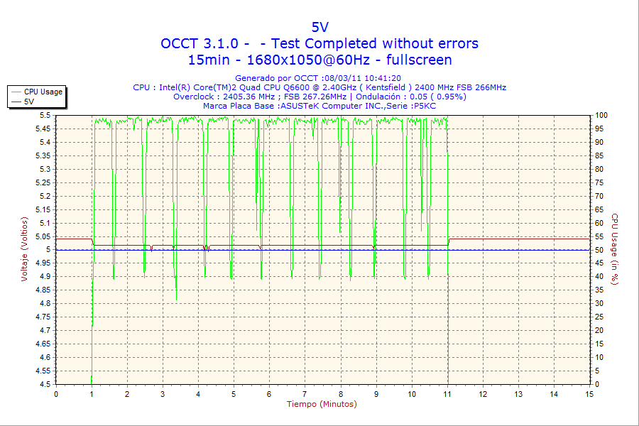 - Test de estabilidad de tensiones de salida con el sofware OCCT v3.1.0.