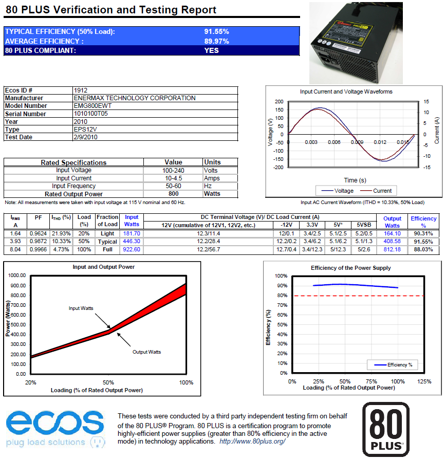 Para finalizar, os dejamos con el certificado 80Plus, fechado en febrero de 2010, con el que la MODU87+ de 800W ha conseguido el nivel 4 de eficiencia energética, 80Plus Gold.