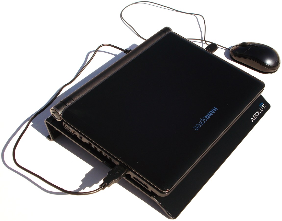 En principio vemos como el netbook encaja perfectamente en anchura con este modelo en concreto. La base AEOLUS N14 es ideal para este tipo de portátil de 10,1″. Siendo estas las dimensiones creemos que resultará relativamente cómodo para ser transportado junto con nuestro portátil, para llevárnoslo donde queramos.