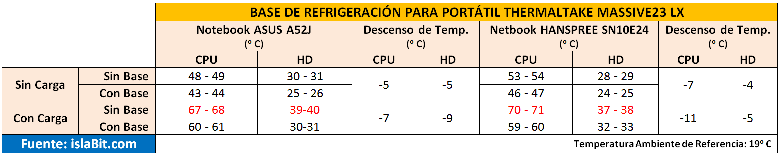 9. THERMALTAKE MASSIVE23 LX. Pruebas II. Netbook. Test de Temperaturas. Ventilador Modding. Sonoridad