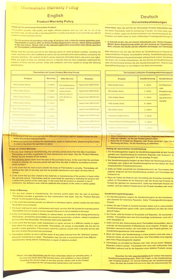 THERMALTAKE MASSIVE23 LX. Folleto de Garantía Thermaltake
