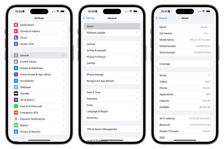 Cada iPhone tiene dos números de modelo importantes: el «número de parte» y el «número de modelo» real. El número de parte es visible de forma predeterminada en la aplicación Configuración. Mientras que el número de modelo real está oculto detrás del número de parte. Para encontrarlo, simplemente toca el número de modelo y aparecerá un código más corto que comienza con la letra «A», que es común a todos los colores y capacidades de almacenamiento del iPhone.