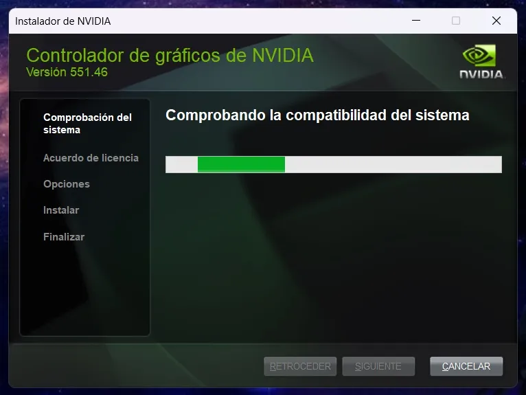 Una vez que tengas el archivo, ábrelo y haz clic en OK en la ventana que aparecerá. Después se abrirá el asistente de la actualización del controlador de Nvidia. Hará una comprobación del sistema, y si todo es correcto, tendrás que aceptar sus términos de licencia, escoger las opciones y, para finalizar, instalar el controlador.