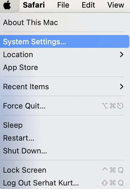 Lo primero que haremos será dar clic en el menú Apple y después vamos a ir a donde dice Configuración del sistema en Mac.