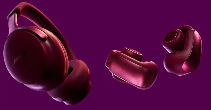 Bose hace una nueva presentación para dos de sus populares auriculares QuietComfort Ultra Open Earbuds y los Headphone: color Deep Plum (ciruela).