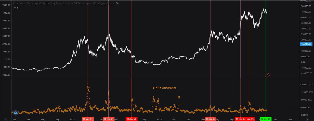 Un análisis comparativo señala que en ciclos anteriores, los mayores retiros de ETH de las carteras de gran tamaño solían preceder a abruptas caídas en su cotización, pero esta vez no se observan picos de retirada que adviertan de una venta masiva.