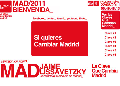 Jaime Lissavetky, candidato por el PSOE/PSM a la Alcaldía de Madrid, lanzó ayer un microsite “LSVTZKY 6.0”, donde explica sus intenciones de gobierno para Madrid.