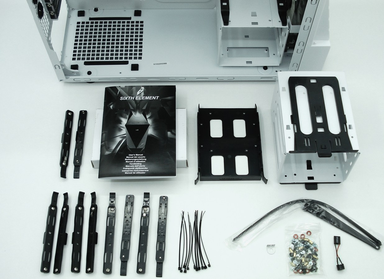 La SIXTH ELEMENT viene acompañada de un completo kit de accesorios para facilitarnos el montaje de todos los componentes en su interior, a parte de algunos peculiares componentes.