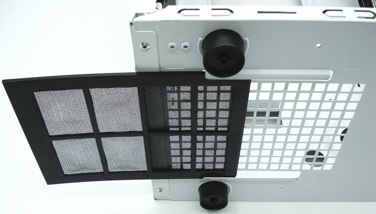 Respecto a su limpieza en las entradas de aire, posee un pequeño filtro antipolvo metálico en su frontal, no desmontable, y uno de plástico extraíble por la entrada de aire de la fuente de alimentación, por su inferior. No posee ningún filtro para la ventana lateral. Tenemos más que entendido que la entrada de aire lateral es de las más eficientes para refrigerar su interior. Es una lástima que no tengamos filtros para esta zona.
