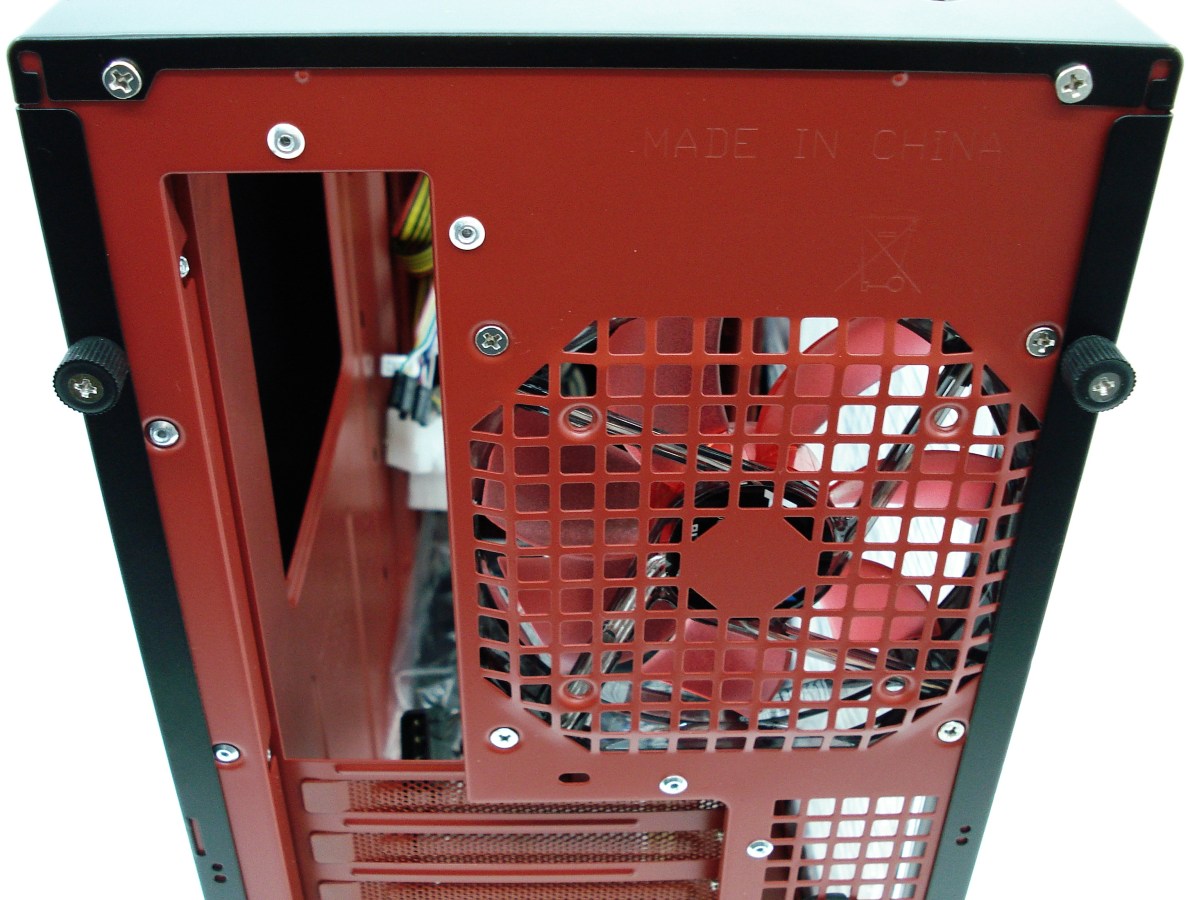 AEROCOOL RS-9 DEVIL RED. Detalle Trasero Parte Superior. Salida de Aire Trasero