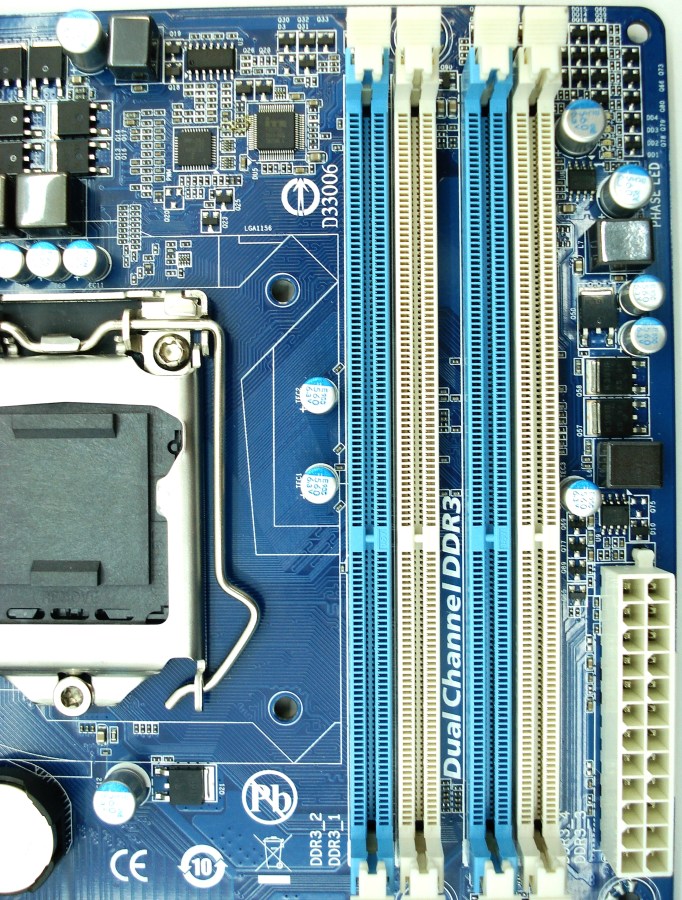 GIGABYTE GA-H55-UD3H. Zona Slots DDR3. Alimentación 24 Pines