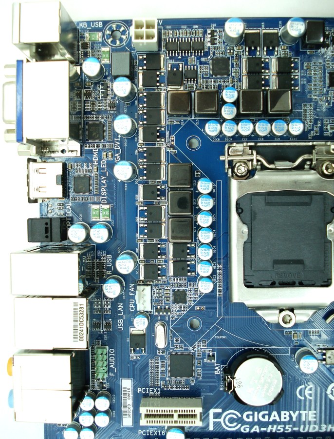 GIGABYTE GA-H55-UD3H. Zona Socket 1156. Alimentación 12V de 4 Pines