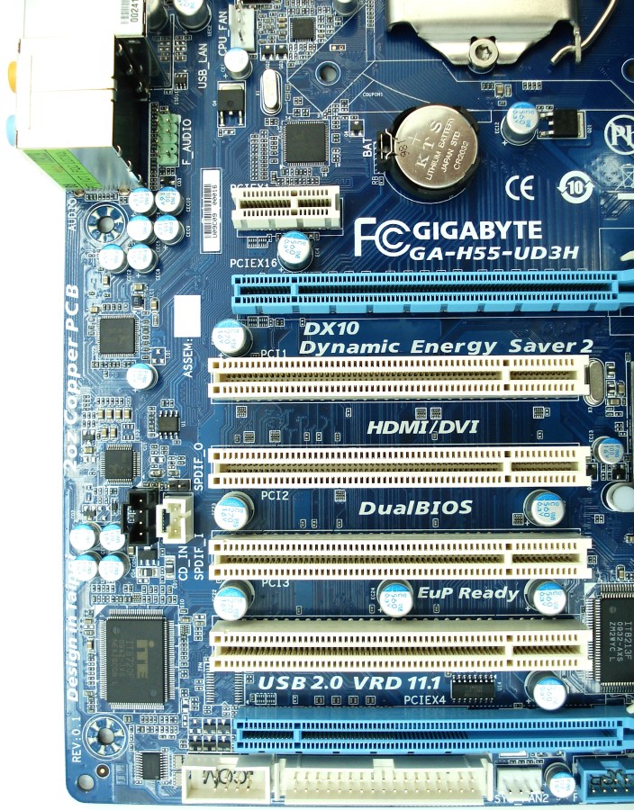 GIGABYTE GA-H55-UD3H. Zona PCIe-PCI