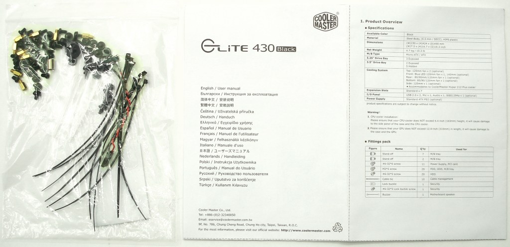 COOLER MASTER ELITE 430 BLACK. Bolsa de Accesorios. Manual de Instrucciones