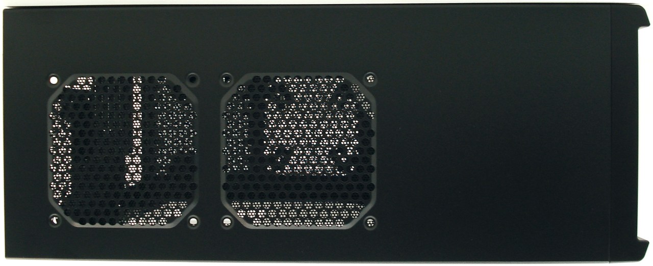 En el lomo y de forma asimétrica, se han colocado las rejillas para colocar 2 ventiladores de 12cm (no incluidos). Estos poseen los filtros antipolvo extraíbles, colocados por la parte interior.