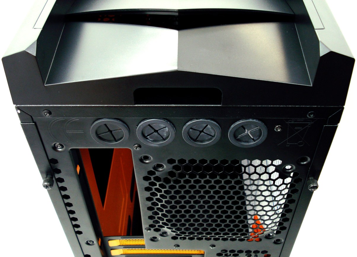 AEROCOOL XPREDATOR EVIL BLACK. Detalle Salto Lomo a Trasera Superior