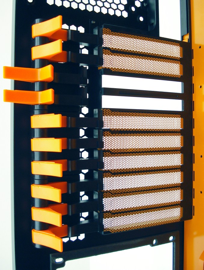 AEROCOOL XPREDATOR EVIL BLACK. Detalle Montaje sin Tornillos Slots PCI