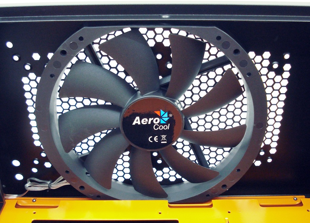 AEROCOOL XPREDATOR EVIL BLACK. Detalle Preinstalación Ventilador Lomo 23 x 20 cm