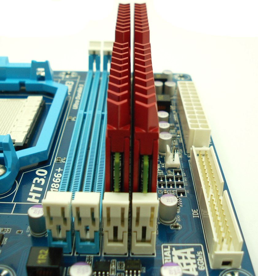 MUSHKIN REDLINE 996997 PC3-17000 2x4GB. Detalle de Altura con Gigabyte GA-890GPA-UD3H II
