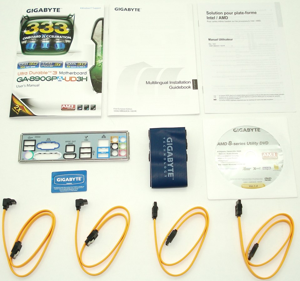 Los componentes y accesorios de la GA-890GPA-UD3H: