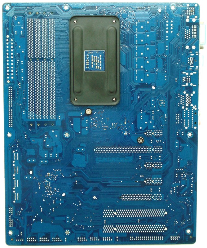 La parte trasera es la típica de una placa base, con un sin fin de pines soldados que sobresalen de la capa inferior de circuito impreso. Lo destacable es el sistema de fijación para el socket AM3, de metal y muy robusto, más resistente al que suelen acompañar en los sockets de Intel, pero con la imposibilidad de girar el disipador del procesador 90º, a no ser que éste esté diseñado para ello. El anclaje del disipador del North Bridge es bastante seguro, con tornillos metálicos, debido a sus grandes dimensiones. El disipador sur está anclado con un doble clip de anclaje de plástico, suficiente para este disipador.
