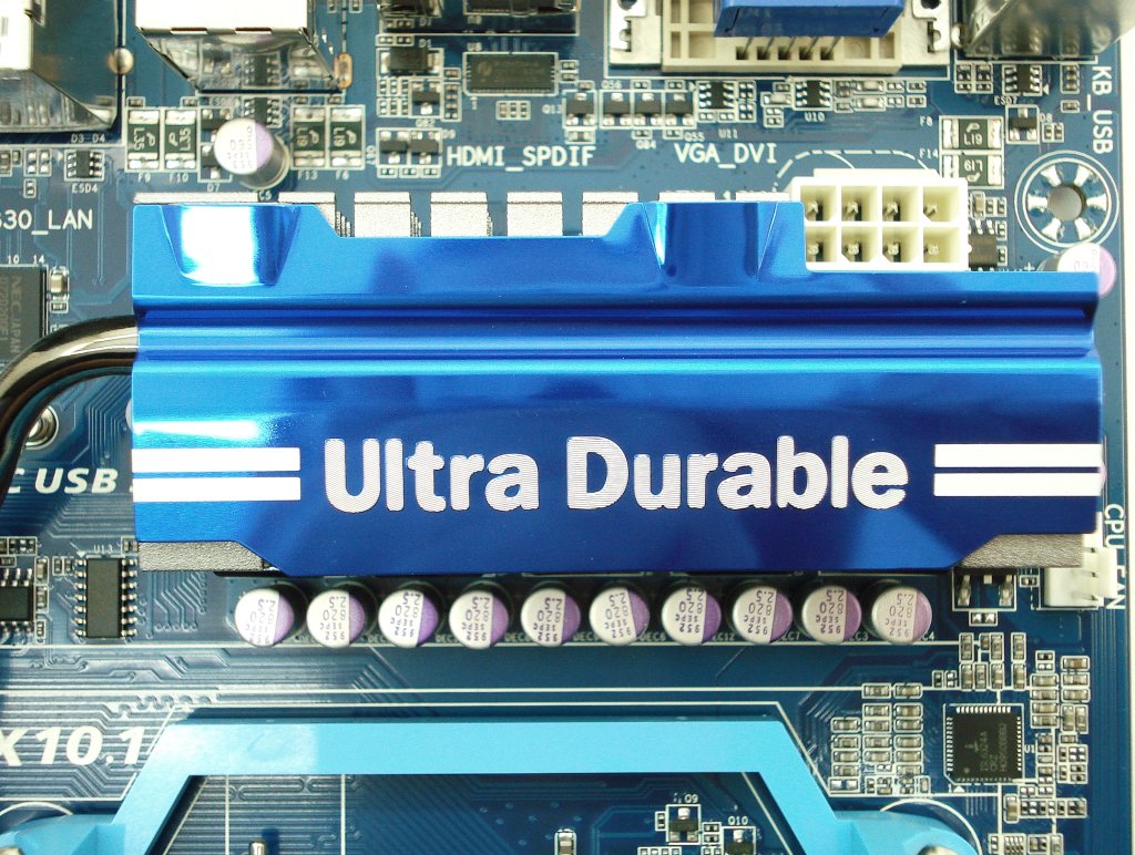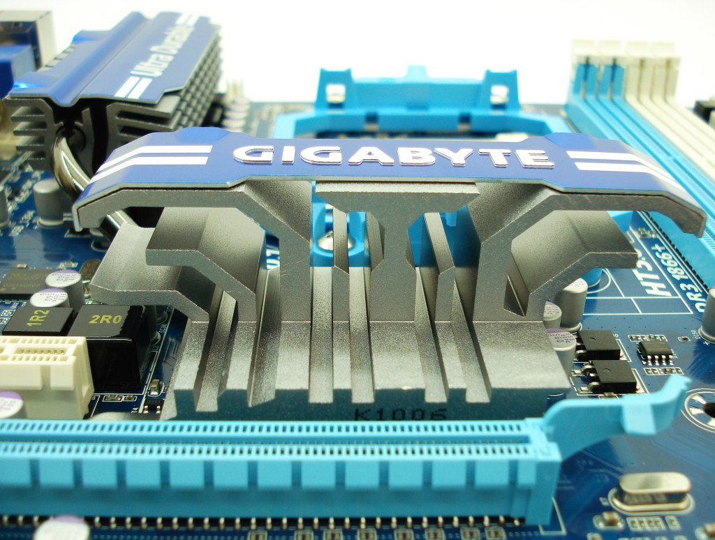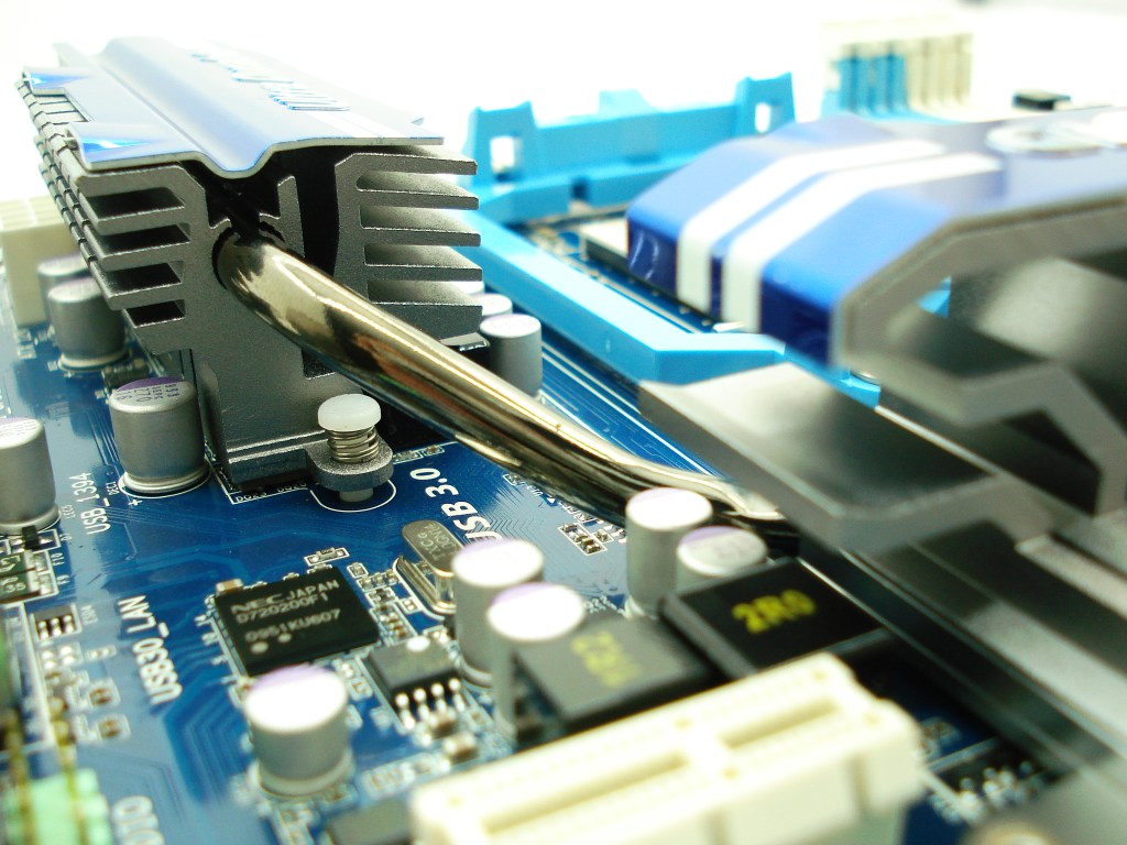 Como ya sabéis, un heatpipe es un tubo metálico, generalmente de cobre, superconductor térmico, que ayuda a trasladar la temperatura por contacto y repartirla sobre una superficie superior que esté en contacto con el ambiente, de manera que logra disipar mejor el calor por puro contacto. En este caso la GA-890GPA-UD3H dispone de un único tubo que une el disipador del Noth Bridge con el disipador encargado de disipar las 4-1 fases destinadas para la CPU. Éste viene con una capa de acabado protector para evitar la oxidación, además de lucir mejor.
