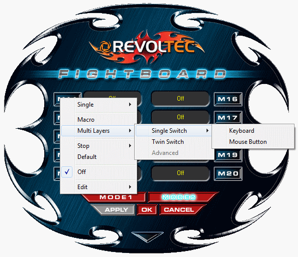 El programa básicamente sirve para configurar las 5+5 teclas de modo individual o en macro programables, que nos servirán como accesos directos dentro de un entorno de juegos, ideal para shoters o juegos de carreras. Posee 2 modos, MODE1 y MODE2, con lo que configuramos hasta 20 programas, 2 por cada tecla programable. La forma de programar es bastante sencilla, aunque encontramos cierta limitación para alguna función.