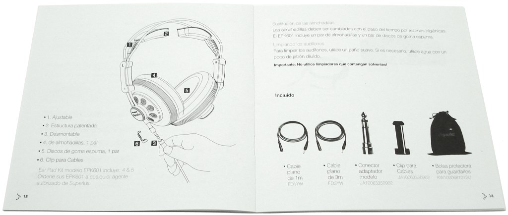 Quizá hubiera sido acertado otro doble juego de almohadillas y discos para sustitución futura, que podremos adquirir por separado con el kit SuperLux EPK601.