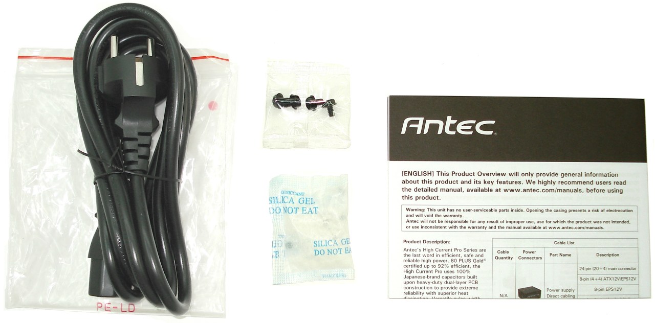 ANTEC HIGH CURRENT PRO 1200W. Cable Alimentación. Tornillería. Silica. Folleto