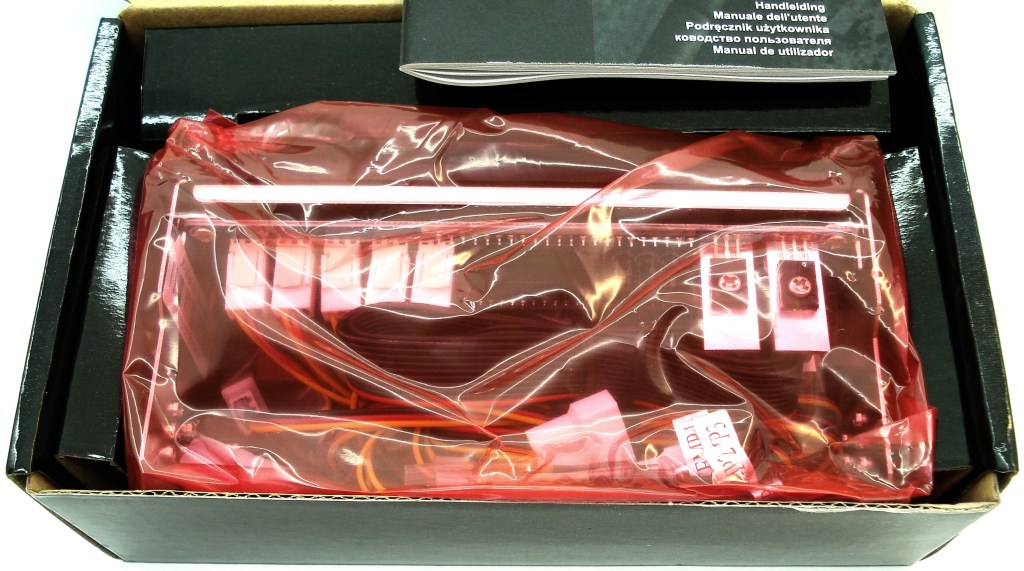 Al abrir la caja nos encontramos directamente con el manual destinado al usuario y justo debajo el panel metido dentro de una bolsa de plástico roja. La caja posee en su interior un compartimento para todos sus accesorios. En general es una caja liviana y bastante bien protegida para el tipo de producto que trae.