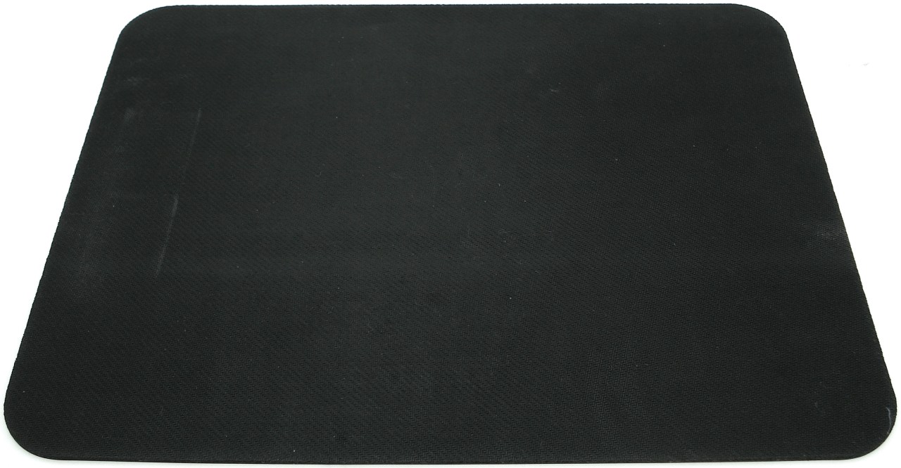 Estas 3 capas, junto con las 2 finas capas de unión, inapreciables en la fotografía superior, ocupan el total de unos 3.8 mm de grosor. Esta dimensión se ha optimizado al máximo para no provocar un escalón brusco en el recorrido entre la superficie de la alfombrilla y el de la mesa que actúa como base de ésta.