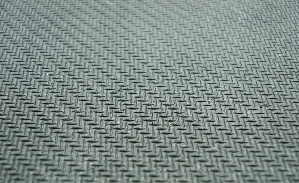 La primera capa es la inferior, diseñada para agarrarse lo máximo posible a cualquier superficie plana que actúe como base para la alfombrilla. En esta capa inferior, se emplea material de caucho natural con un relieve superficial escalonado. Este tipo de relieve, permite mayor superficie de contacto, evitando el efecto «planning» de una superficie totalmente lisa.