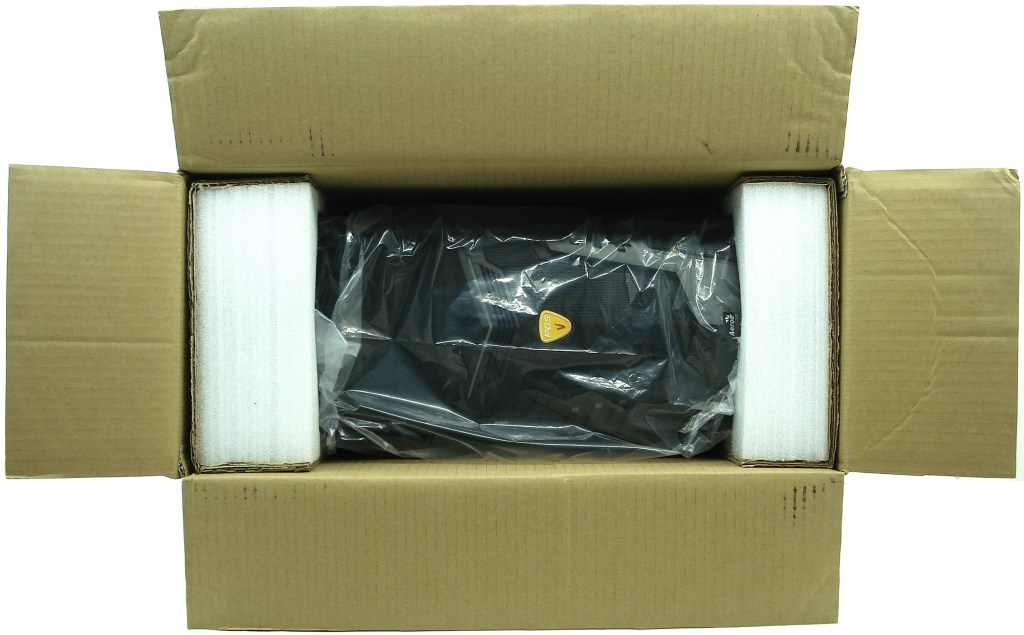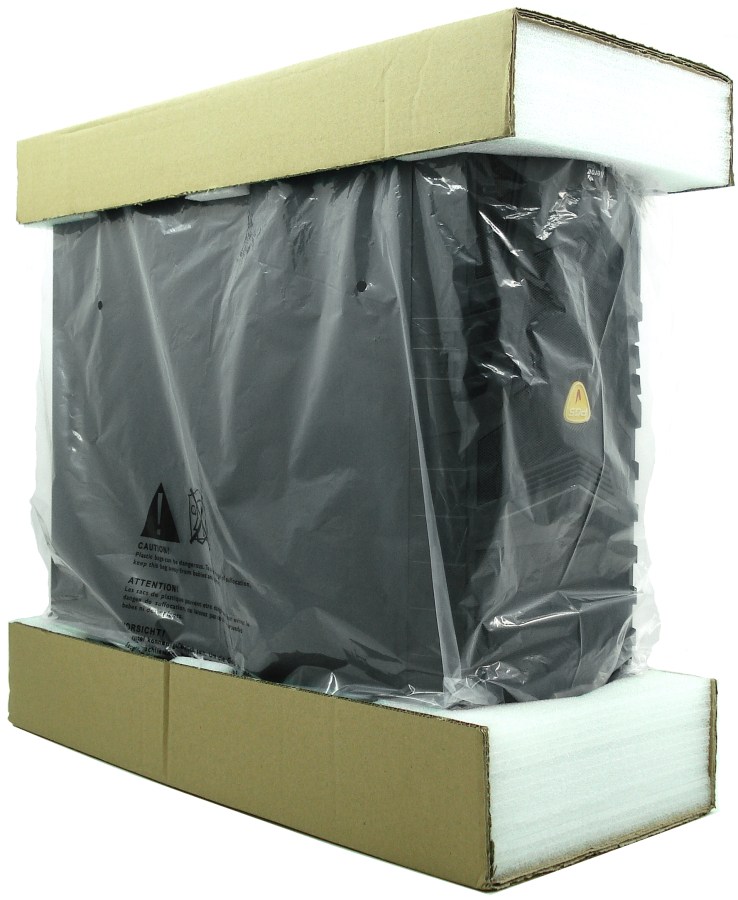 La primera «sorpresa» al abrir la caja es precisamente en sus protecciones. Se usa espuma semirígida con 3 perfiles en forma de U transversales pegadas sobre una tira de cartón también en forma de U pero en longitudinal, para conformar una de las 2 protecciones de amortiguación y protección del producto para el transporte. Este método resulta algo más económico que si se empleara todo de poliestireno expandido o de espuma semirígida. Además, la semitorre viene protegida en el interior de una bolsa de plástico resistente.