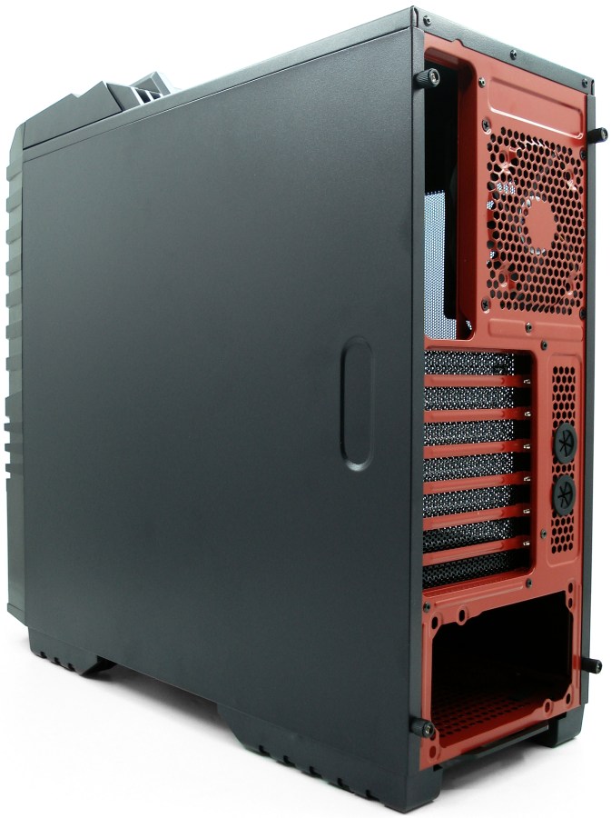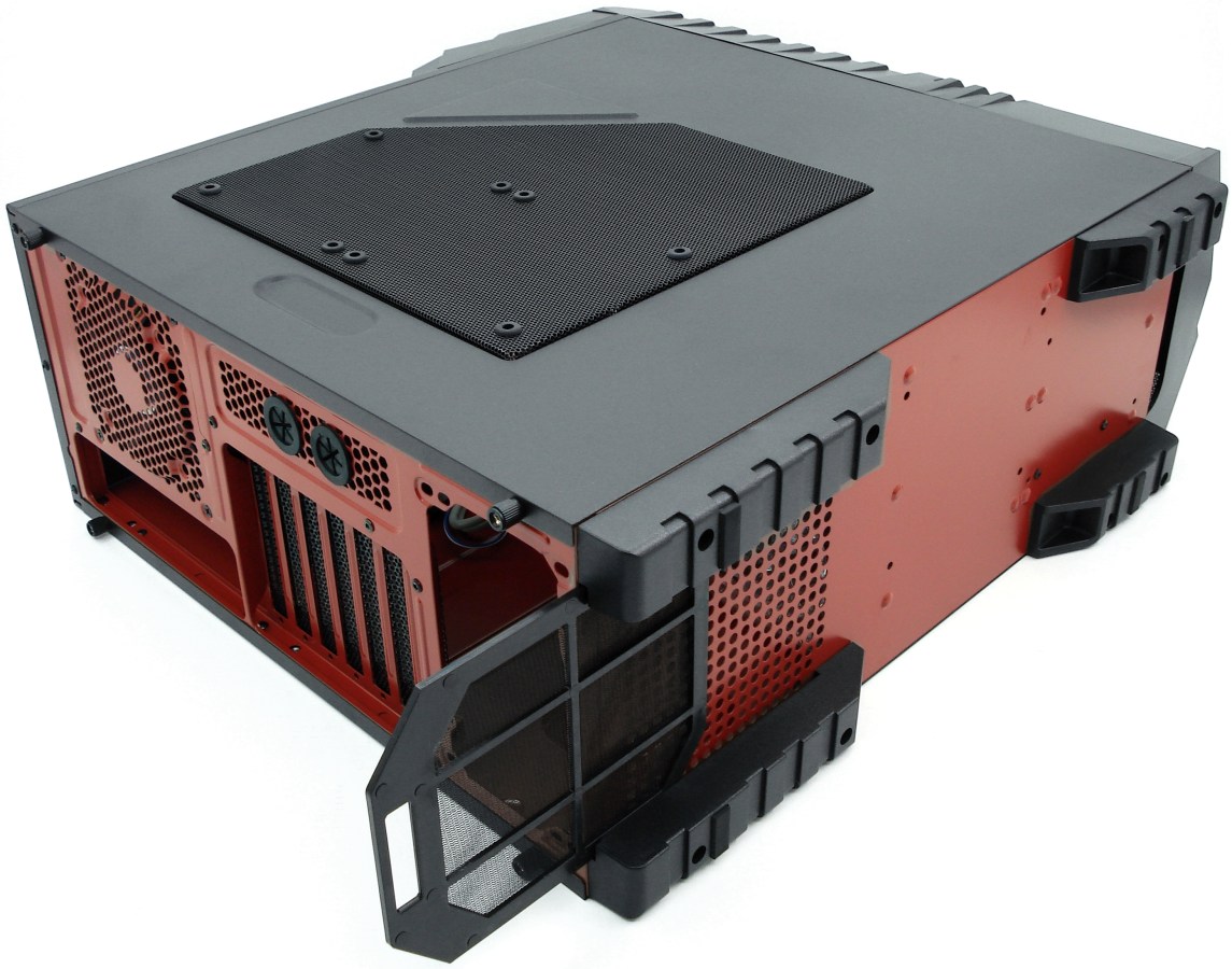 La X-Warrior es bastante sencilla, una caja bastante normal, donde se le coloca un agresivo frontal y una corona, con el lomo totalmente plano y sin perforaciones, combinando el negro por fuera y el rojo por dentro como colores protagonistas. Además, sus patas también son destacables, algo grandes, que elevan a la semitorre más de un par de centímetros. Esta es una forma de «magnificar» la semitorre. El resto es de lo más común; 2 laterales desmontables, bastando retirar 2 tornillos manualmente para cada lateral.