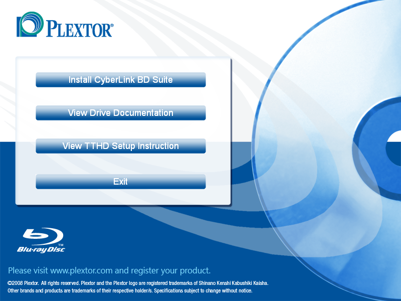 PLEXTOR PX-LB950UE. Ventana de Inicio Instalación CyberLink BD Suite