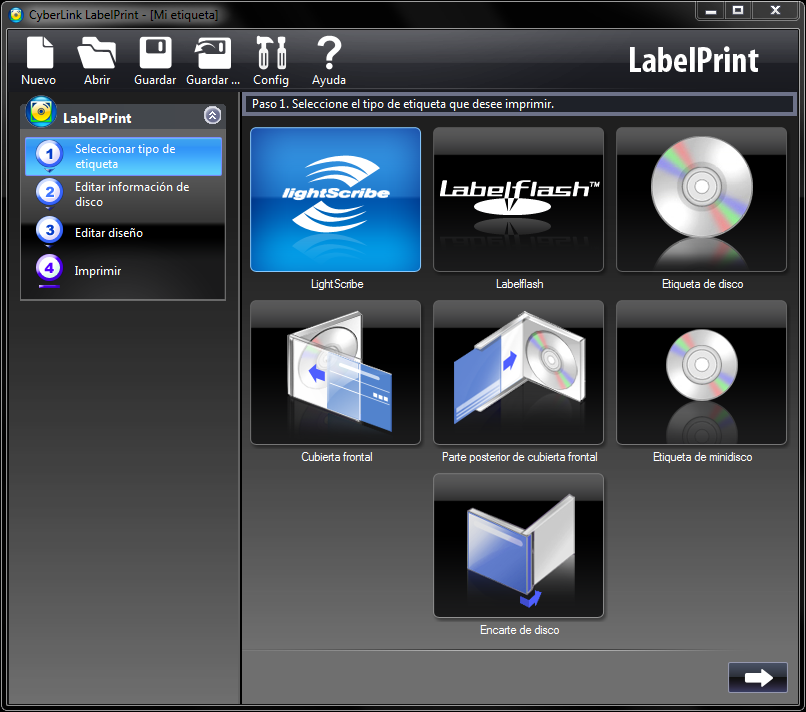 LabelPrint es un software de impresión de etiquetas que permite diseñar e imprimir elegantes etiquetas de CD/DVD en 4 sencillos pasos. Simplemente se selecciona un tipo de plantilla, información de disco, diseño de texto, imagen de fondo y destino de impresión. Este programa admite el diseño e impresión en una amplia gama de plantillas de marcas de etiquetas líderes. Es compatible con «LabelFlash» y «LightScribe».