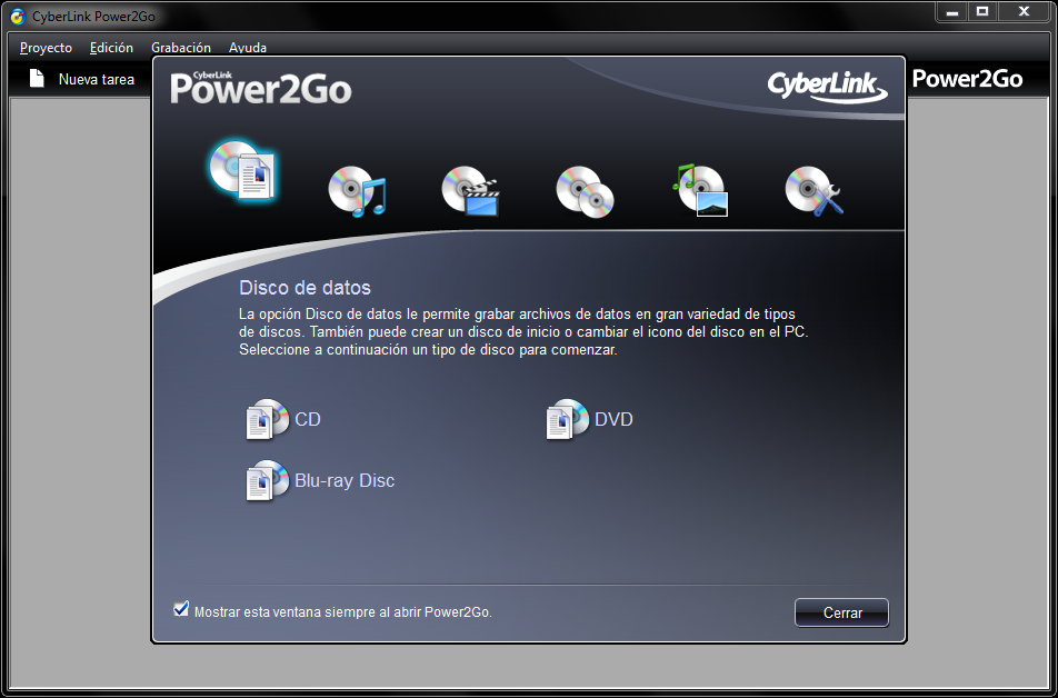 Power2Go es un software de grabación de medios muy utilizado. El cifrado de grado industrial, más creatividad y control de archivos multimedia con un motor potente que tiene en cuenta todas las necesidades de grabación. Diseñado tanto para los usuarios de empresa como los domésticos, Power2Go ofrece la seguridad que las empresas ansían y la facilidad de uso que los usuarios desean. Incluye un conjunto de herramientas multimedia que permiten compartir archivos multimedia con estilo.