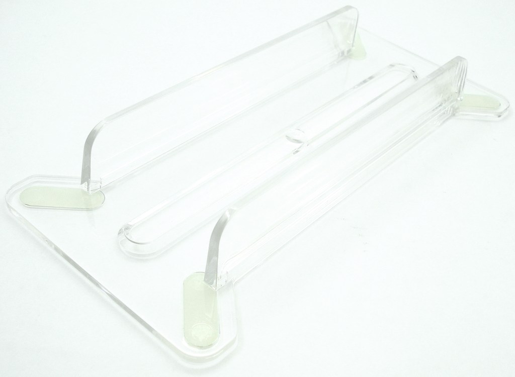 Si carecemos de espacio en horizontal, o simplemente queremos lucir la grabadora en posición vertical, el producto está acompañado de un práctico soporte que actúa como base estabilizando la unidad inclinada 90º respecto de la horizontal. Es de material plástico de calidad y dispone de 4 grandes patas para asentarse bien.
