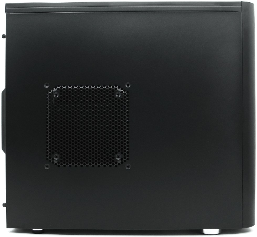 Ojalá pudiéramos saltarnos esta fotografía, pero es lo que hay. De nuevo, el lateral izquierdo marginado en la mayoría de semitorres y torres del mercado, aquí se asoma de nuevo, da igual la gama que sea, siempre acaba pagando el pato el mismo lado. Los ingenieros son reacios en general de darle la funcionalidad que se merece, y más a estas alturas, con tanta experiencia acumulada. El lateral, tan solo se limita a poderse instalar un ventilador de 12/14cm, sin filtro antipolvo alguno. Esta zona es una de las más eficientes para refrigerara las zonas más calientes del interior de la semitorre: tarjeta gráfica, CPU, socket placa base y memorias. Al estar tan cercana, es la que mayor rendimiento directo recibirá en refrigeración activa si se instala con el sentido metiendo aire frío del exterior. Al no traer filtro, se puede instalar un ventilador con el sentido hacia fuera, extrayendo aire caliente, aunque mermará el rendimiento, nos evitaremos llenar de polvo toda la semitorre por dentro.