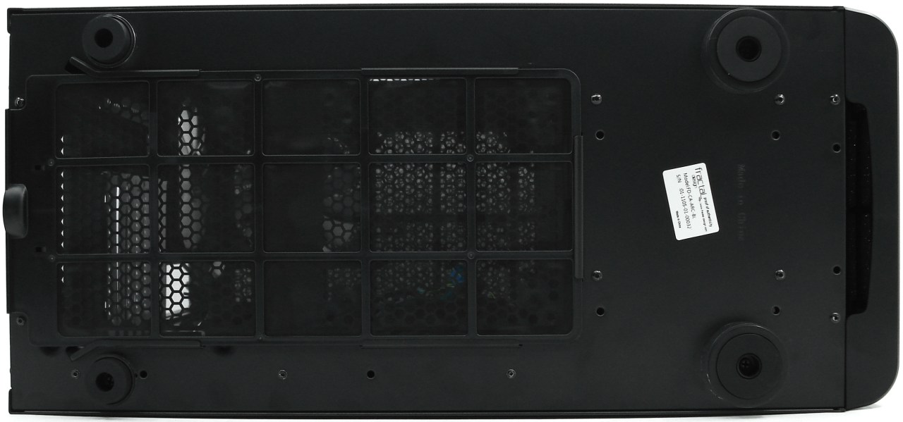 Tal cómo hemos afirmado anteriormente, el carril de doble filtro antipolvo es lo más relevante de la parte inferior. Delante de la fuente de alimentación se puede instalar un ventilador de 12/14 cm. Para ello, la fuente no podrá superar los 17 cm de profundidad. Las patas de goma están firmemente montadas, y no paramos de ver remaches por todos sitios, éstos también pintados en negro. Se nota que la Arc Midi está bastante bien reforzada por todas partes, sinónimo de robustez y resistencia. Además, el hecho de que las patas estén separadas al máximo en anchura, garantiza mayor estabilidad de la semitorre, cubriendo mayor superficie de asiento.
